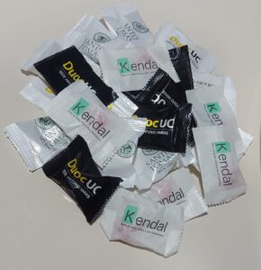 Mini sachet de 3 cm. alto x 5 cm. Con 1 drops frambuesa. Bolsas 100 un. Duración 1 año. Aprobados son Resolución Sesma